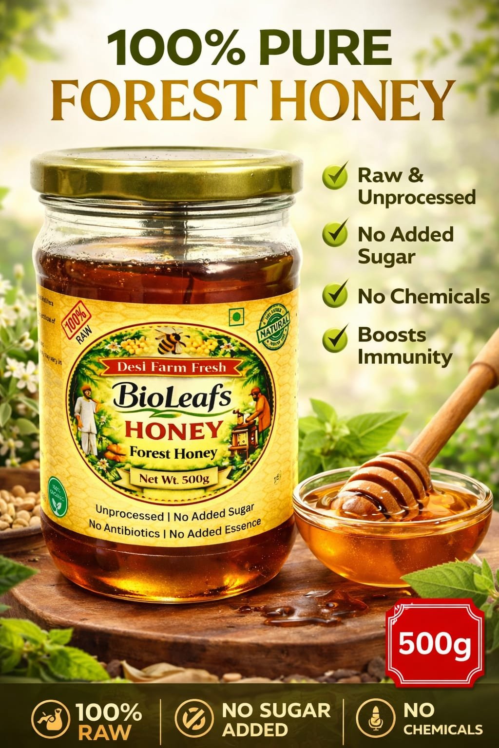 Bioleafs 100% Pure Raw Forest Honey 500g | Natural, Unprocessed & Unfiltered Honey | No Added Sugar | Rich in Antioxidants | Immunity Booster | Organic & Natural Honey